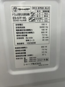埼玉県和光市でSHARP ES-S7F-WL ドラム式洗濯乾燥機を出張買取 目立つ傷の少ない状態のため適正価格で査定しました