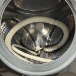 お預かりしたES-S7F-WLは、外観に大きなキズやヘコミは見受けられず、ドア周辺のパッキン部もきれいな状態でした。槽内には輸送用ホースが入っており、使用に伴うわずかな水垢はありましたが、動作確認では洗い・脱水・乾燥ともに問題なく作動しました。付属の給水ホース・排水ホースも揃っており、再販に十分対応できるコンディションです。