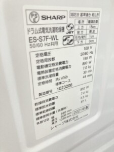 埼玉県上尾市へ出張買取 SHARP ドラム式電気洗濯乾燥機 ES-S7F-WL(2021年製)使用感少なめのため適正価格で査定しました