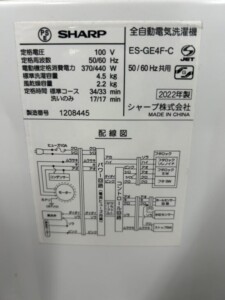 埼玉県飯能市 シャープ ES-GE4F-C 4.5kg洗濯機 出張買取 外装に使用感はあるものの動作良好のため適正価格で査定しました