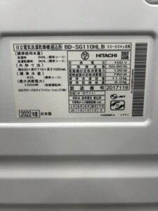 今回は埼玉県鴻巣市にお住まいの40代女性のお客様より、日立 ドラム式洗濯乾燥機 BD-SG110HL(2022年製)の出張買取をご依頼いただきました。
