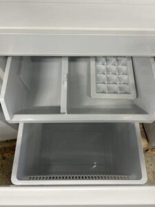 設置から間もない冷蔵庫とのことで、外装・庫内ともに使用感がほとんど感じられない非常に良好な状態でした。冷蔵・冷凍ともに温度の立ち上がりも早く、異音などもなく動作は安定しています。棚板やドアポケットの欠品もなく、付属パーツはすべて揃っていました。