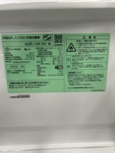 埼玉県北足立郡伊奈町へAQUA AQR-14R(W) 冷凍冷蔵庫 出張買取 2025年製ほぼ未使用のため高額査定