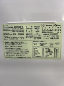 埼玉県日高市へシャープ SJ-PD28F-T 冷凍冷蔵庫 出張買取 2020年製 動作良好のため無料引取り対応