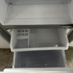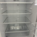 庫内は棚板やクリアケースなどの付属パーツがすべて揃っており、汚れやニオイも少なく全体的にきれいな印象でした。冷蔵・冷凍ともに冷え具合を確認し、動作に問題はありません。一方で、正面のステンレス調パネルには小さな凹みと細かな擦りキズが見受けられました。
