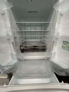お預かりしたGR-P460FD(EW)は、外装の光沢も保たれており、扉や側面に目立つ傷やへこみがほとんど見られないきれいな状態でした。庫内も清掃が行き届いており、棚板やドアポケットの欠品もなく、冷却動作・庫内灯・操作パネルなどの基本機能はすべて正常に動作していました。大型冷蔵庫としては使用感が少なく、再販需要の高いコンディションでした。