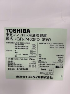 今回は滋賀県彦根市にお住まいの30代男性・会社員、夫婦世帯・持ち家(一戸建て)のお客様より、TOSHIBA(東芝)ノンフロン冷凍冷蔵庫 GR-P460FD(EW)(2019年製)の出張買取をご依頼いただきました。お住まいのリフォームを機に家電の入れ替えを行うとのことで、電話から当社へお問い合わせをいただいております。