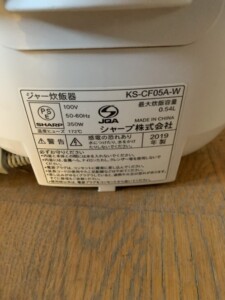 神奈川県相模原市へシャープ KS-CF05A-W 炊飯器買取 使用感少なめのため状態を考慮して買取査定しました