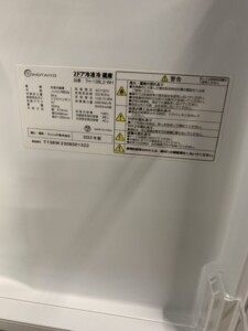 神奈川県平塚市へ出張買取 2ドア冷凍冷蔵庫 TH-138L2-WH(2023年製)外装に使用感あり・庫内清潔な状態のため適正価格で査定しました