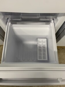 拝見したSJ-D18K-Wは、外装のホワイトボディに目立つへこみや大きな傷は見当たらず、側面に光の加減で分かる程度の擦れがある程度でした。庫内は棚板・ケース類が揃っており、透明パーツにも割れや欠けは確認できません。冷蔵室はニオイ残りが少なく、パッキン周りにも強い汚れが出ていない点を評価しました。冷凍室の引き出しもスムーズに開閉でき、付属の製氷皿も確認できました。