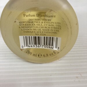 Crabtree & Evelynのルームフレグランスは現在国内での流通が少なく、一定のコレクター需要があります。ただし本品は未使用品ではなく、ラベルに傷みがある点、また200mlボトルで残量が満量ではない点を考慮しました。最終的に200円での査定価格をご提示しました。