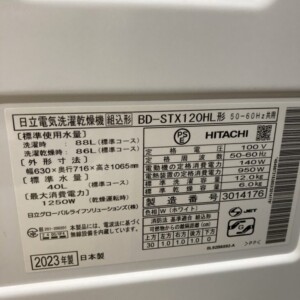 静岡県伊豆の国市へ日立 BD-STX120HL ドラム式洗濯乾燥機買取 2023年製で状態良好のため適正価格で査定しました
