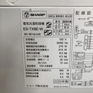 千葉県習志野市へSHARP洗濯乾燥機ES-TX8E-W買取 2020年製で外観きれいなため無料でお引き取りしました