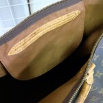 お買取したバックのスピーディ30は、表面のモノグラムキャンバスに大きな破れはなく、型崩れも比較的少ない状態でしたが、ハンドルやファスナー周辺のヌメ革には全体的なヤケと色の濃淡が見られ、底面のレザー部分にも擦れが確認できました。内部には薄い汚れがありましたが、強いベタつきや破れはなく、ファスナーの開閉も問題ありませんでした。