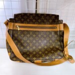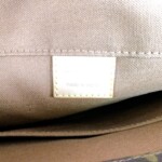 お買取したルイヴィトン・ヴァルミーMMは、外側のモノグラムキャンバスに大きな破れはなく、全体の型崩れも比較的少ない状態でしたが、ショルダーストラップやパイピング部分のヌメ革には濃いヤケとスレがあり、内側ポケットには経年による生地の劣化が見受けられました。ファスナーの開閉自体は問題なく、実用には支障のないコンディションです。