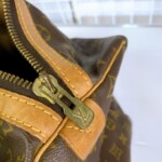 お預かりしたスピーディ30は、モノグラムキャンバス部分に破れや剥がれは見られず、柄の発色も良好でしたが、持ち手やファスナー周りのヌメ革には色ヤケや細かな擦れがあり、内側のライニングには長年の使用による薄い汚れや小さなシミが確認できました。ファスナーの開閉は問題なく、金具部分にはくすみがあるものの機能面に支障はありませんでした。