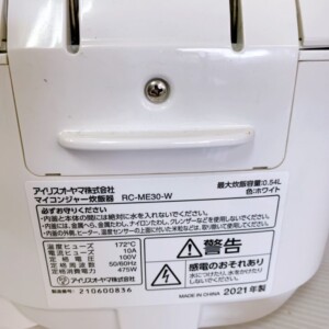 千葉県袖ヶ浦市 アイリスオーヤマ RC-ME30-W マイコン炊飯器 2021年製 0.54L 付属品ありのため適正価格で買取しました