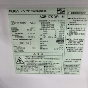 大阪府大東市 AQUA AQR-17K(W) ノンフロン冷凍冷蔵庫 2021年製 使用感があっても適正価格で査定しました