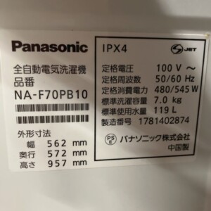 今回は大阪府高石市にお住まいの50代男性のお客様より、パナソニック 全自動電気洗濯機 NA-F70PB10(洗濯容量7.0kg)を出張買取にてご依頼いただきました。
