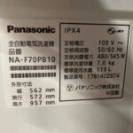 大阪府高石市へパナソニック NA-F70PB10 洗濯機買取 使用感ありでも動作良好のため適正価格で査定しました