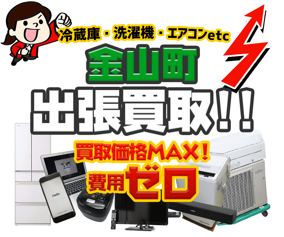 - はい。金山町内(川口・中川・本名ほか)全域にお伺い可能です。出張費は無料、最短即日でご自宅までお伺いし、その場で査定から買取まで対応いたします。