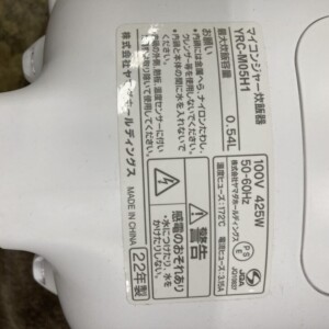 大分県由布市マイコンジャー炊飯器 YRC-M05H1 2022年製 使用感があり内鍋に傷があるため適正価格で査定しました
