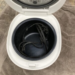 外装は日常使用に伴う細かな擦れや汚れが見受けられ、全体的に使用感が多い状態でした。付属の電源コードは揃っており動作確認も問題ありませんでしたが、内鍋にはコーティングの摩耗や小傷が複数あり、消耗度合いが分かる状態でした。