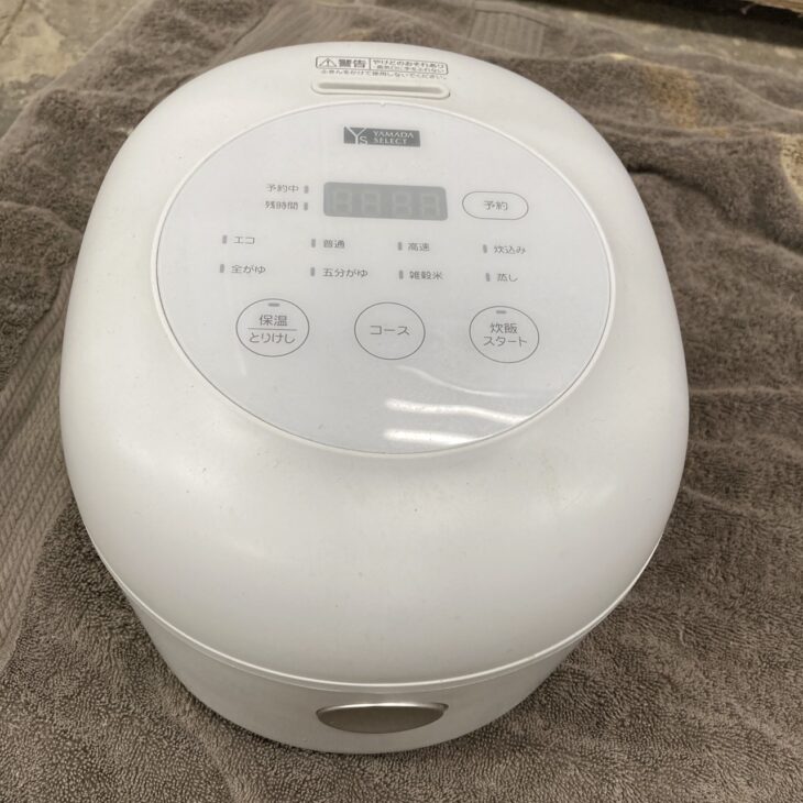 今回は由布市にお住まいの30代女性のお客様より、ヤマダセレクト マイコンジャー炊飯器 YRC-M05H1(2022年製)を出張買取にてご依頼いただきました。コンパクトサイズで一人暮らしや少人数世帯に適したモデルとして流通量も多い商品です。