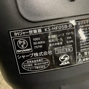 大分県津久見市 シャープ IHジャー炊飯器 KS-HF05B-B 2021年製 内外装に傷と汚れがあるため適正価格で査定しました