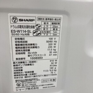 長崎県大村市シャープ ES-W114-SL ドラム式洗濯乾燥機 使用感ありのため適正価格で査定しました