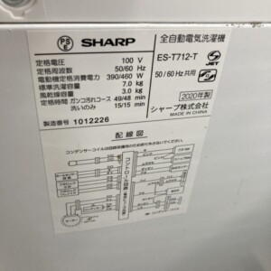 今回は島原市にお住まいの40代女性・主婦・単身世帯・賃貸マンションにお住まいのお客様より、シャープ 全自動電気洗濯機 ES-T712-T(2020年製)を出張買取にてご依頼いただきました。