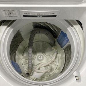 お引き取りした全自動電気洗濯機は、外装に大きなへこみや割れは見られず、天板や操作パネルも比較的きれいな状態でした。洗濯槽内部は使用に伴うわずかな汚れはあるものの、目立つサビや強い臭いもなく清潔感のある印象でした。給水ホースや排水ホースもそろっており、動作確認でも洗い・脱水ともに問題なく作動しました。