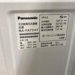 長崎県平戸市へPanasonic 全自動電気洗濯機 NA-FA70H7買取 きれいな状態のため高評価で査定しました