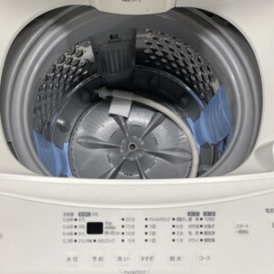 本体は外装に大きなへこみや割れはなく、操作パネルの表示もはっきりしていました。洗濯槽内部のステンレス部分にも強い汚れやサビは見受けられず、全体として使用感の少ない印象でした。給水ホースなどの付属品も揃っており、通常使用に問題のないコンディションでした。