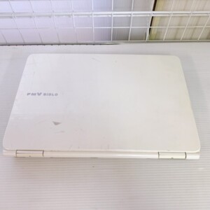 お預かりしたFMV-BIBLO NF/G40は、外装に擦れや小傷、使用による汚れが見受けられる状態でした。天板側にも細かな傷があり、全体的に「使い込まれた印象」はありますが、筐体の大きな割れや致命的な破損は確認できません。