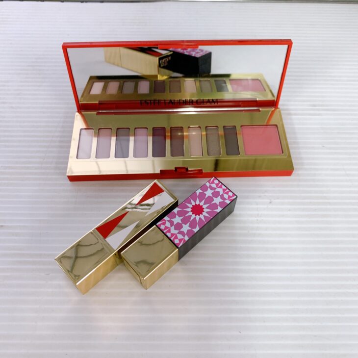 お品物はいずれも外箱付きで保管状態が良好で、リップスティックは使用回数が少なく、表面の削れや変形もほとんど見られませんでした。パレットについてもミラーに大きな傷はなく、アイシャドウ部分に目立つ欠けや粉飛びもなく、全体的に丁寧に使われていたことが分かる状態でした。