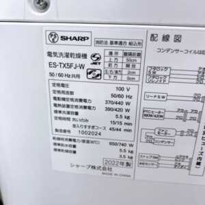 ES-TX5FJ-Wは洗濯と簡易乾燥を兼ね備えた需要の高いモデルで、2022年製と比較的新しい点も高評価につながりました。外観・内部ともに良好で付属品完備であったため、中古市場の取引実績を踏まえ、今回は4,000円での査定となりました。年式だけで評価する業者が多い中、当社では動作確認や再販時の需要を重視しているため、他社よりも高い金額をご提示できています。