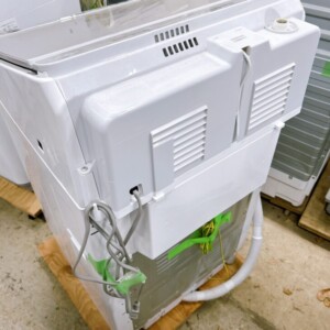 本体はガラストップ仕様で外観は比較的きれいな状態を保っており、操作パネルの文字消えもなく通常使用に伴う細かな擦れ程度でした。洗濯槽内には目立つサビや強い汚れは見られず、糸くずフィルターも付属しており、動作確認でも洗い・脱水・乾燥すべて問題なく作動することを確認できました。給水ホースや排水ホースも揃っており、すぐに再販可能なコンディションでした。