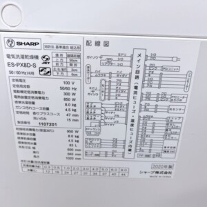 東京都調布市でシャープ 電気洗濯乾燥機 ES-PX8D-S ガラストップ仕様 やや使用感ありのため適正価格で査定しました