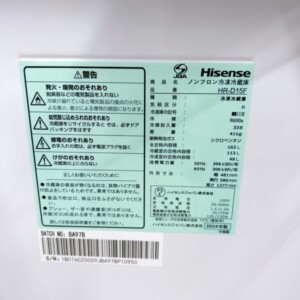 東京都府中市Hisense冷凍冷蔵庫HR-D15F買取 ほとんど使用感のない美品のため適正価格で査定しました
