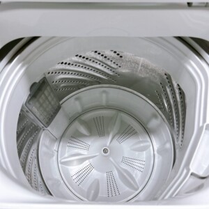 本体外装は大きなへこみや目立つ傷もなく全体的にきれいな状態で、洗濯槽内部も強い汚れや黒カビは確認されませんでした。糸くずフィルターや操作パネルの反応も良好で、給水・排水ホースも揃っており、動作確認でも洗い・脱水ともに問題なく作動しました。中古品としては良好なコンディションです。
