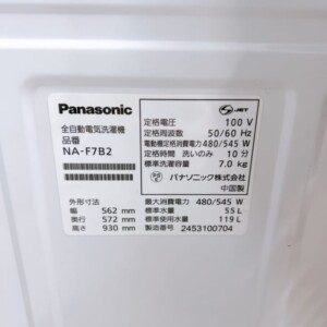 東京都文京区 パナソニック 全自動電気洗濯機 NA-F7B2 きれいな状態のため高評価で査定しました