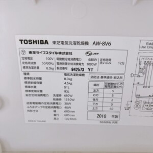 東京都渋谷区 東芝 全自動洗濯乾燥機 ZABOON AW-8V6 2018年製 乾燥機能付きのため適正価格で買取しました