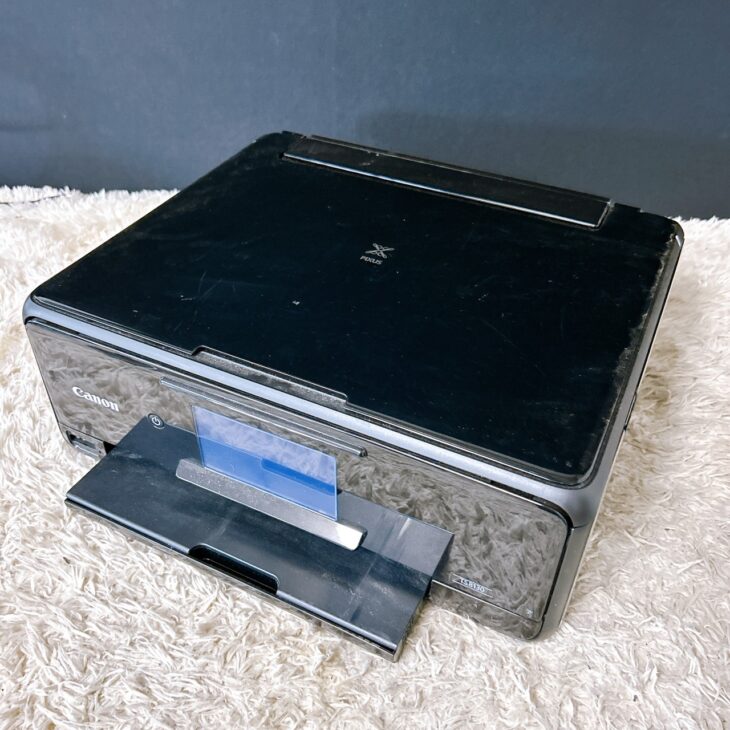 お預かりしたTS8130は、天面を中心に細かな擦れやホコリの付着が見受けられましたが、外装の割れや大きなへこみはありませんでした。スキャナーガラス面に大きな傷はなく、通電および印刷・コピー動作も確認できています。給紙トレイや可動部の劣化も軽度で、再販には問題のない状態でした。