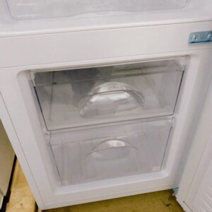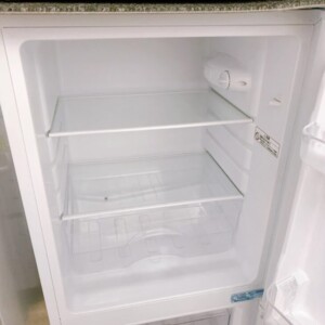 お預かりした冷蔵庫は、外観の白ボディに大きなへこみや目立つ変色が見当たらず、全体としてきれいな印象でした。庫内も棚板やケースが揃っており、写真から確認できる範囲では強い臭い残りやこびりつく汚れは少ない状態です。使用に伴うわずかな擦れはあるものの、単身用としては扱いやすいコンディションのため、減額は最小限で進めました。