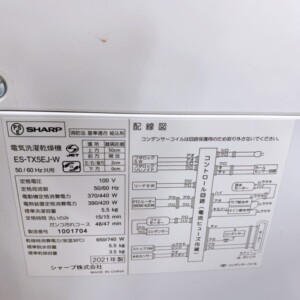 今回は東京都福生市にお住まいの50代・男性(会社員/単身世帯/賃貸アパート)のお客様より、シャープ 洗濯乾燥機 ES-TX5EJ-W(2021年製・洗濯5.5kg/乾燥3.5kg)についてご相談をいただきました。