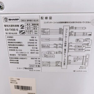今回は東京都羽村市にお住まいの40代・男性(会社員/単身世帯/賃貸マンション)のお客様より、シャープ 洗濯乾燥機 ES-TX5E-S(2021年製・洗濯5.5kg/乾燥3.5kg)について出張でのご相談をいただきました。