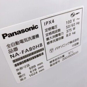 東京都港区でパナソニック 全自動洗濯機 NA-FA80H8 8.0kg 使用感少なめを出張買取しました