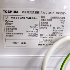 東京都小金井市でTOSHIBA 全自動洗濯機 AW-700Z2 出張買取 2023年製のため状態を踏まえて査定しました