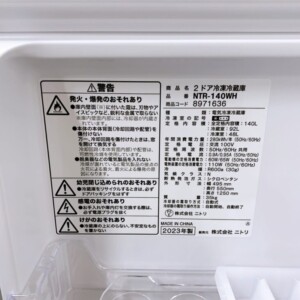 東京都国立市でニトリ 2ドア冷蔵庫 NTR-140WH 出張買取 2023年製で使用感が少ないため価格を評価しました